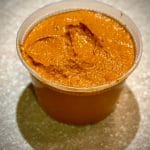 Mesquite smoked pork, roasted red poblano, garlic and lime hot sauce., blackened poblano chili sauce, jalapeño garlic hot sauce, and a gooseberry salsa.